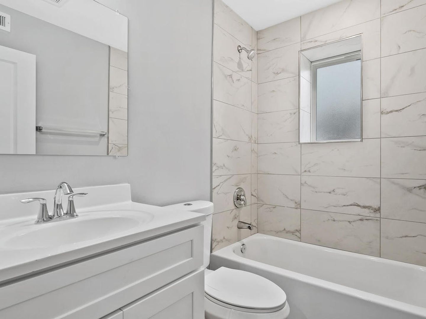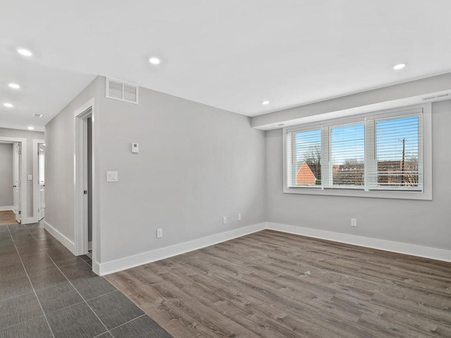The bathroom showcases stylish tile work and updated finishes. Each of the three bedrooms offers ample lighting and individual closets for added convenience.